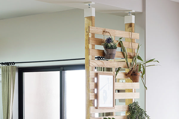 Create a solid partition by attaching thin panels to Labrico. Add some flair with shelving so that your stylish sectional not only divides the room but provides storage, too.