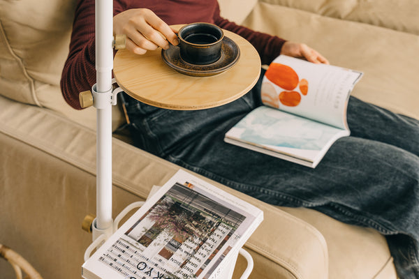 This side table can be adjusted to the height that's easiest for you. Use it by the sofa, table or TV as you like.